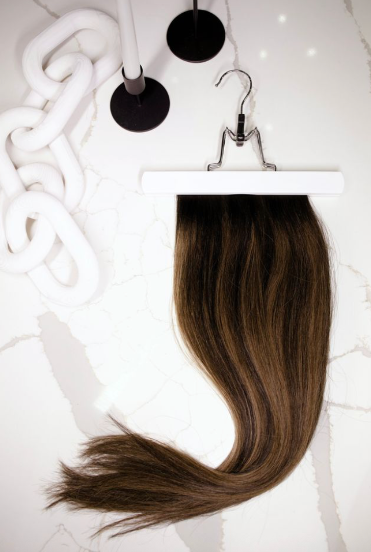 Dark Cool brunette, our coolest tone on dark hair, level 4 root and lowlights with a cool level 6 highlight.